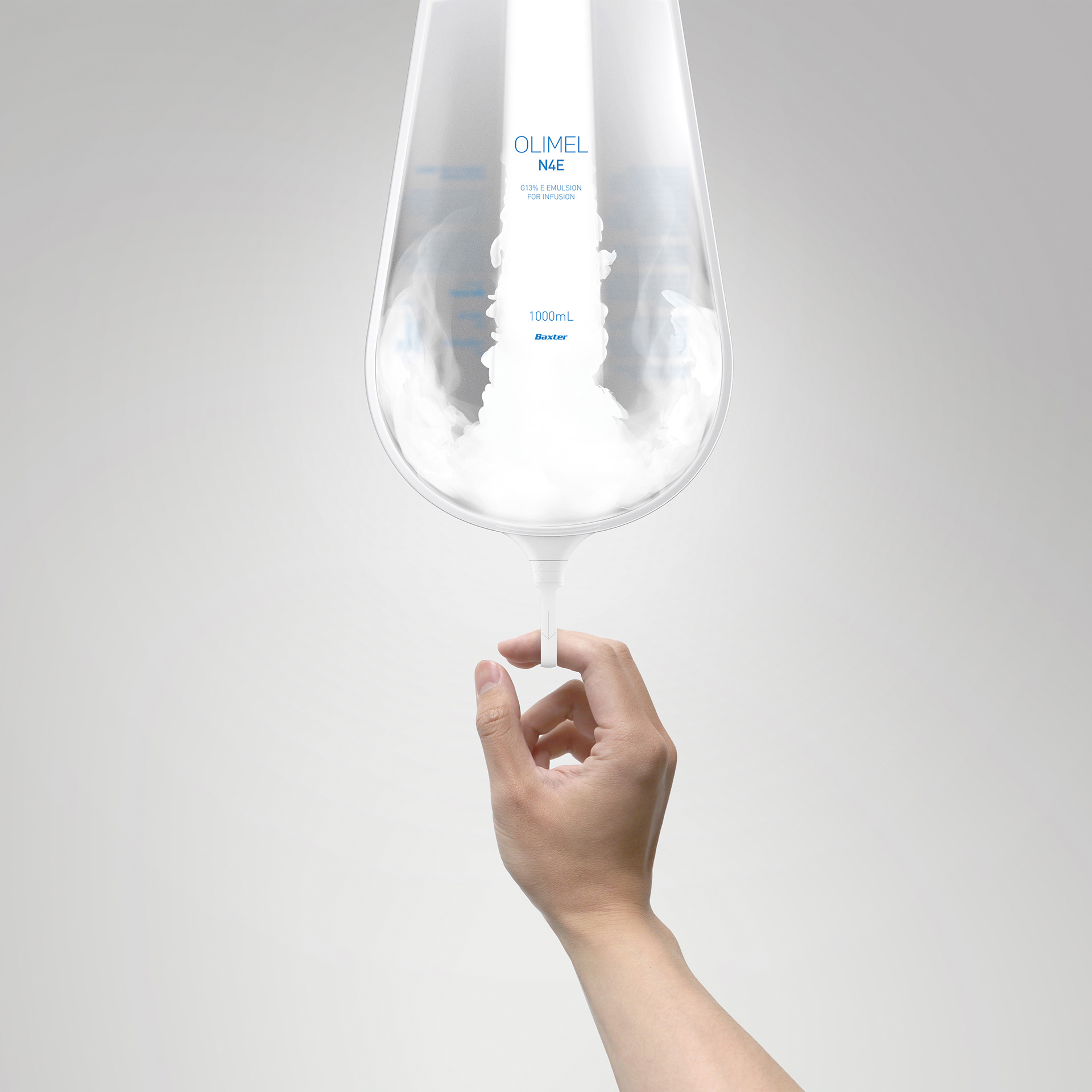 A clean translucent bag that conveys healing rather than medication with simple touch-points